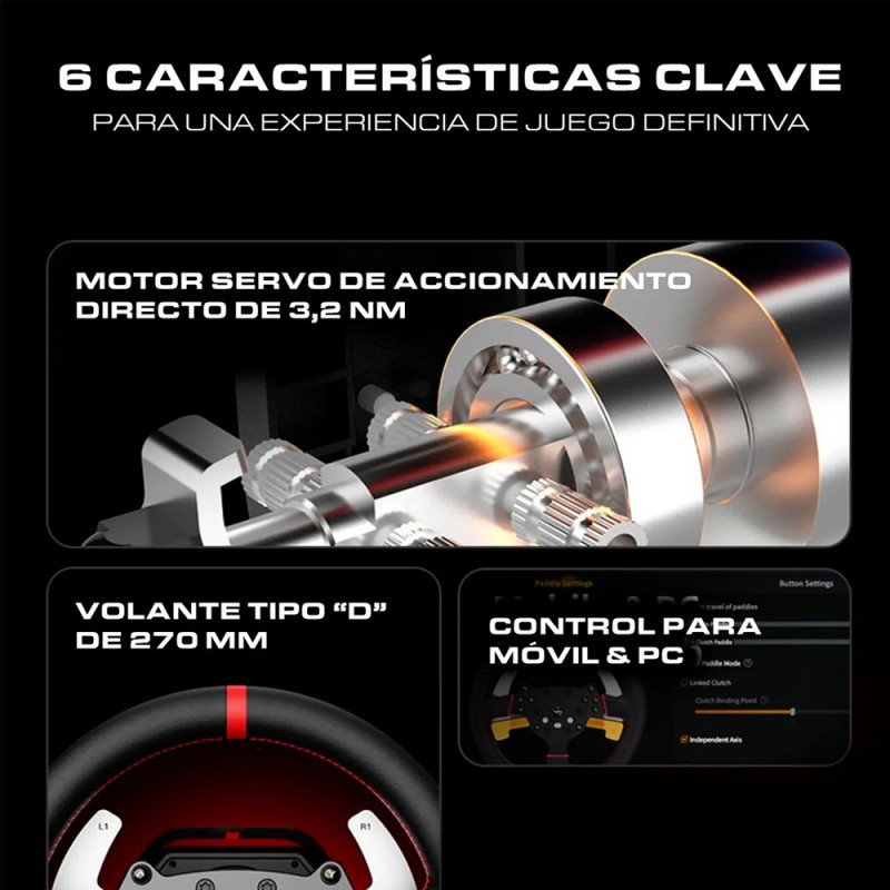 - Torque máximo de 3.2 Nm para una sensación de conducción auténtica.