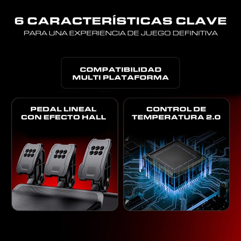 - Pedales de acelerador, freno y embrague con sensores de efecto Hall para una precisión superior.